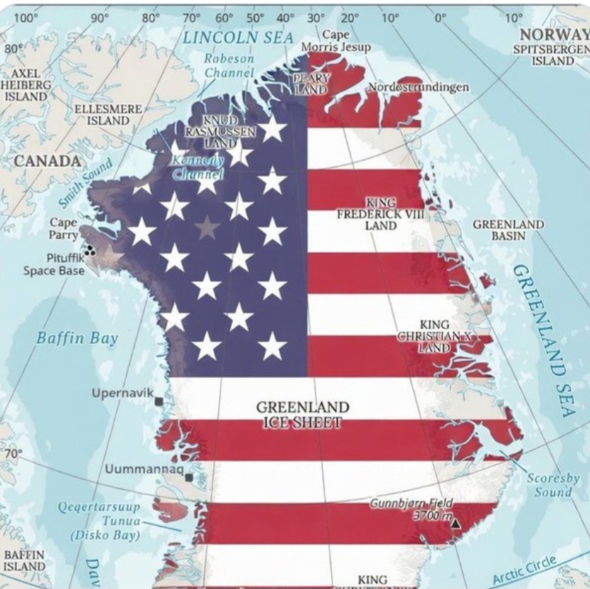 Katie Miller, esposa del subjefe de gabinete de la Casa Blanca, Stephen Miller, publicó en su cuenta de X un mapa de Groenlandia cubierto con los colores de la bandera de EE.UU., lo que provocó una respuesta de Dinamarca, a la que pertenece este territorio, que exigió respeto por su integridad territorial.